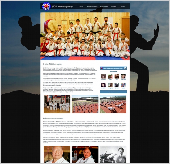 Спорт является неотъемлемой частью жизни любого здорового, уважающего себя человека. Существует множество различных спортивных направлений. Любой человек сможет подобрать среди всего разнообразя то, что подойдет именно ему. Этот сайт посвящен небольшому клубу боевых искусств. Мальчики с детства мечтают быть самыми сильными и смелыми. Дайте своему ребенку шанс почувствовать себя настоящим мужчиной, отдайте его в секцию карате или бокса. А может быть он рожден чтобы быть спортсменом? Тренера клуба боевых искусств настоящие профессионалы своего дела, вашему ребенку обеспечен индивидуальный подход и высокий уровень контроля за безопасностью. Сайт школы выполнен в красивом дизайне, присутствует много фотографий спортсменов, что стимулирует людей, которые их смотрят, принять решение в пользу спортивной школы. Ведь спорт дает нам заряд бодрости, поднимает настроение и просто-напросто делает нашу жизнь ярче и насыщеннее. Заказать изготовление сайта в Москве не дорого, главное, чтобы вы понимали как легко могут окупиться все ваши затраты. Наша задача- создать сайт, который будет работать на вас, а вы будете заниматься тренировочным процессом и не думать о том, как привлечь клиентов. |