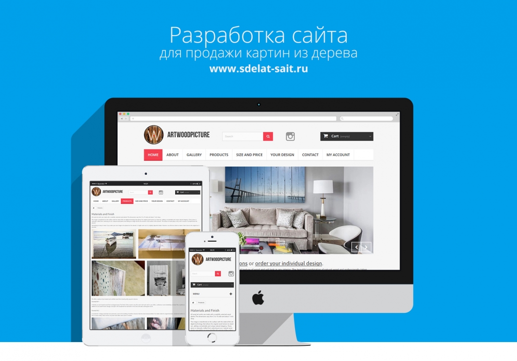 Успешное продвижение бизнеса требует активного применения современных технологий. Аналогичное утверждение будет справедливым и для творчества: желание популяризировать результаты своих трудов, показать их большому количеству людей лучше всего реализовать с применением Интернета. Представленный пример по продаже картин из дерева объединяет в себе две цели: получение прибыли и демонстрация прекрасного. Создание интернет магазина помогает подробно рассмотреть представленные позиции и абсолютно легко приобрести понравившуюся вещь.